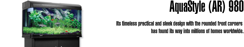The Largest in the Aqua Style range the Aqua One AR 980 measures 98 W x 60 H x 47 D cm and has a capacity of 215 L. Three Flourescent tubes are fitted as standard,